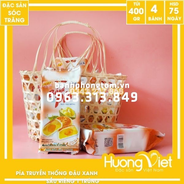 Bánh pía đậu xanh sầu riêng trứng 2 sao trọng lượng 400g là loại bánh trung của Tân Huê Viên được nhiều khách hàng chọn mua làm quà biếu bởi bao bì sang trọng và riêng biệt từng bánh giúp bảo quản bánh tốt hơn so với các loại bánh đựng trong cùng khuông