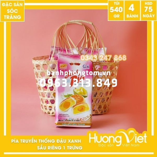 Bánh pía đậu xanh sầu riêng trứng 4 sao trọng lượng 540g là loại bánh to nhất của Tân Huê Viên được nhiều khách hàng chọn mua làm quà biếu bởi bao bì sang trọng và riêng biệt từng bánh giúp bảo quản bánh tốt hơn so với các loại bánh đựng trong cùng khuông