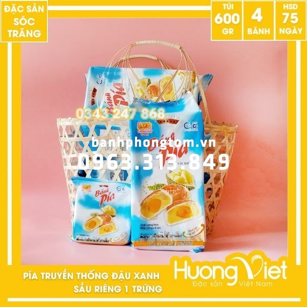 Bánh pía đậu xanh sầu riêng trứng 5 sao trọng lượng 600g là loại bánh to nhất của Tân Huê Viên được nhiều khách hàng chọn mua làm quà biếu bởi bao bì sang trọng và riêng biệt từng bánh giúp bảo quản bánh tốt hơn so với các loại bánh đựng trong cùng khuông