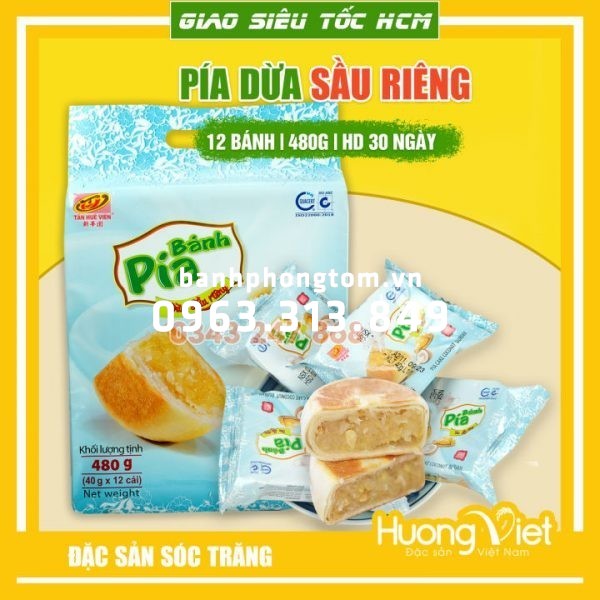 ✔️ Bánh pía nhân Dừa Sầu Riêng là sản phẩm mới ra mắt tháng 11/2021 của công ty Tân Huê Viên.