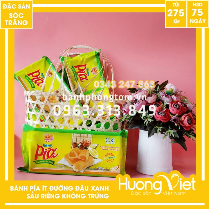 Bánh pía ít đường không trứng là sản phẩm bánh pía đặc biệt dành cho người ăn kiêng với lượng đường giảm 50% , thành phần chính của bánh là đậu xanh, sầu riêng