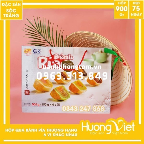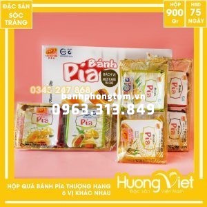 Hôp bánh pía thượng hạng 6 vị gồm 6 loại bánh khác nhau là một trong những sản phẩm bánh pía nổi bật của năm 2019, bánh được rất nhiều khách hàng chọn mua làm quà biếu bởi bao bì sang trọng và có 6 loại bánh khác nhau