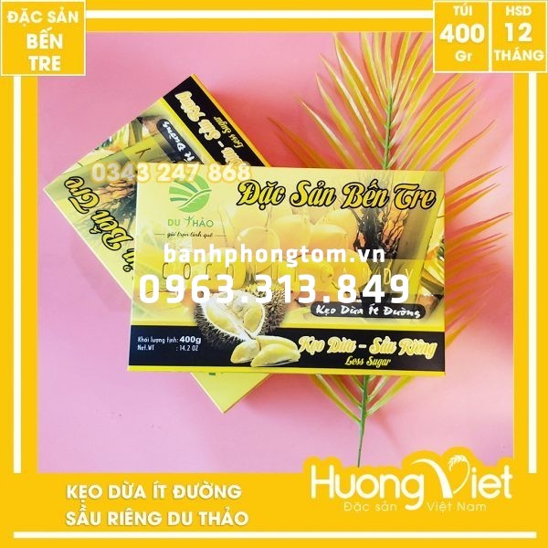 Kẹo dừa sầu riêng cao cấp ít đường Du Thảo 400gr
